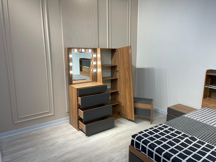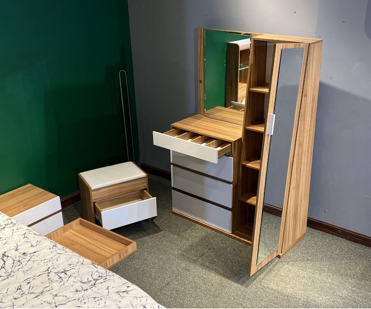 میز آرایش و آینه همراه با صندلی: این مجموعه نه تنها زیبایی اتاق خواب شما را افزایش میدهد، بلکه به کمک صندلی راحت و فضای مناسب، استفادهای چندمنظوره و کاربردی ارائه میدهد.