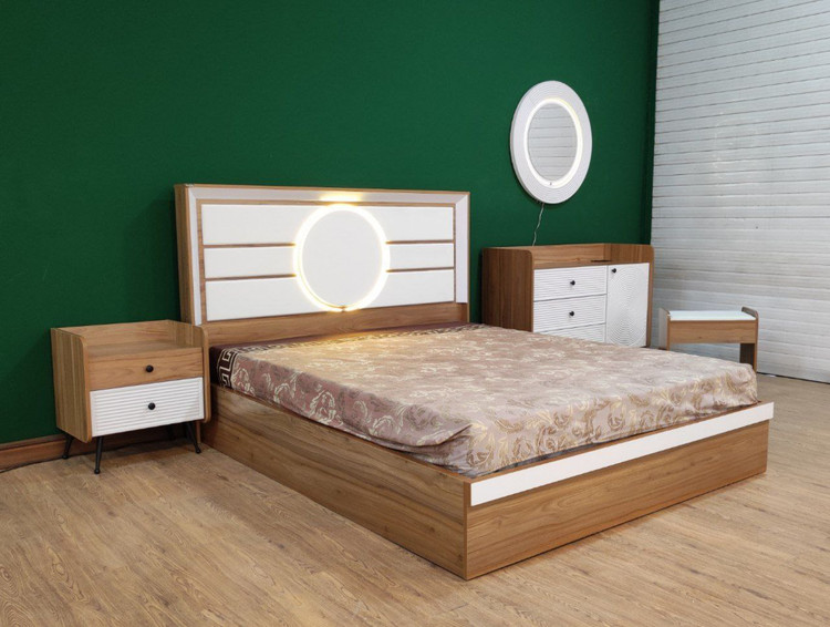نورپردازی سرتخت: سرتخت این مدل با طراحی منحصربهفرد و نورپردازی خاص، جلوهای چشمگیر و متفاوت به فضای اتاق خواب شما میبخشد.