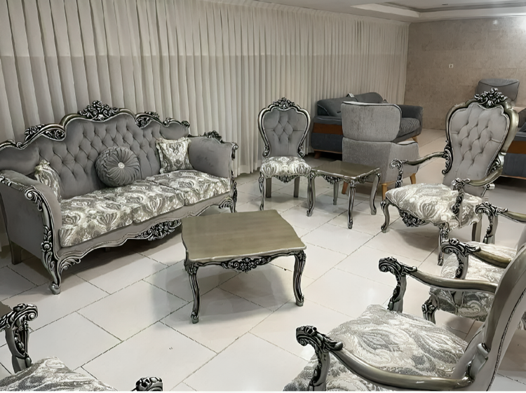 با مبل هشتنفرهی مدل آراد، ردپای زیباییشناسی فرانسوی را در قلب دکوراسیون خانهات جاودانه کن. طراحی خاص این مبل با قوسهای ملایم در دستهها، پایههای چوبی کشیده، و پشتیهای منحنیاش، ظرافتی سلطنتی به فضا میبخشد که هم چشمنواز است و هم آرامشبخش.