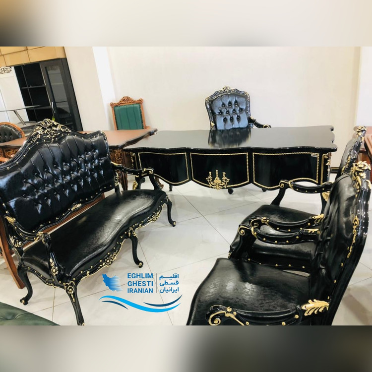 ست مبل و میز جلو مبلی با طراحی کلاسیک فرانسوی، جلوهای لوکس و متفاوت به پذیرایی یا دفتر شما میبخشد.