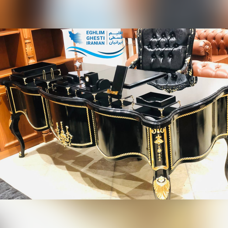 میزی لوکس با طراحی کلاسیک فرانسوی، مناسب دفتر و فضای کاری شیک.