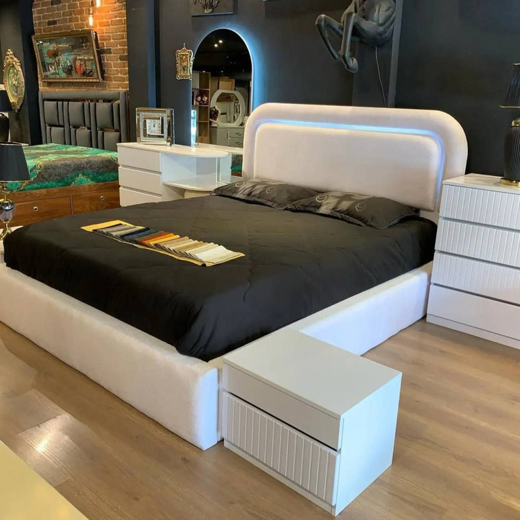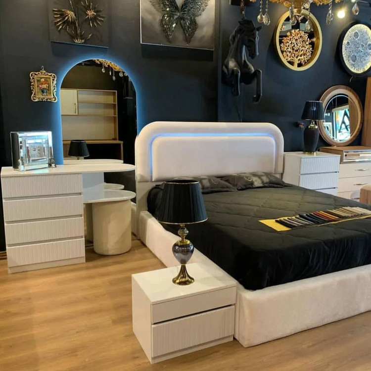 🪵 جنس: ساختهشده از MDF مرغوب با روکش پارچهای لطیف و مقاوم، تضمینکننده دوام و زیبایی بلندمدت
