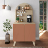 کافی بار خانگی مدل اسپرت از مدلهای ترند این روزهای خانه های ایرانی است. این مدل جذاب با طراحی زیبا و هلالی شکل خود زیبایی چشم نوازی به منازل شما میبخشد. متریال استفاده شده در این محصول از ادم دی اف خالص با روکش وکیوم ممبران بوده که علاوه بر زیبایی استحکام قابل توجهی نیز دارد. رنگبندی خاص این محصول با ام دی اف هایگلس به رنگ نسکافه ای پیشنهاد فروشگاه ما به شما عزیزان برای انتخاب یک کافی بار خاص میباشد. لولای دربها از نوع آرام بند بوده و پایه ها از نوع پایه مبلی با استحکام بالا و رنگ ثابت است. ابعاد و طراحی این محصول مطابق با سایز انواع قهوه ساز و ملزومات مورد نیاز است تا تجربه ی نوشیدن یه لیوان قهوه برای شما هرچه لذت بخشتر باشد. یکی از طبقات کافی بار مدل اسپرت به صورت متحرک ساخته شده تا امکان جایگذاری انواع قهوه ساز و اسپرسو ساز با ارتفاع متنوع را به شما بدهد. ابعاد کلی و رنگبندی این محصول نیز مثل تمامی محصولات فروشگاه قابل تغییر به سبک و سلیقه ی شما عزیزان است. در ذیل به مشخصات فنی و ظاهری این محصول میپردازیم