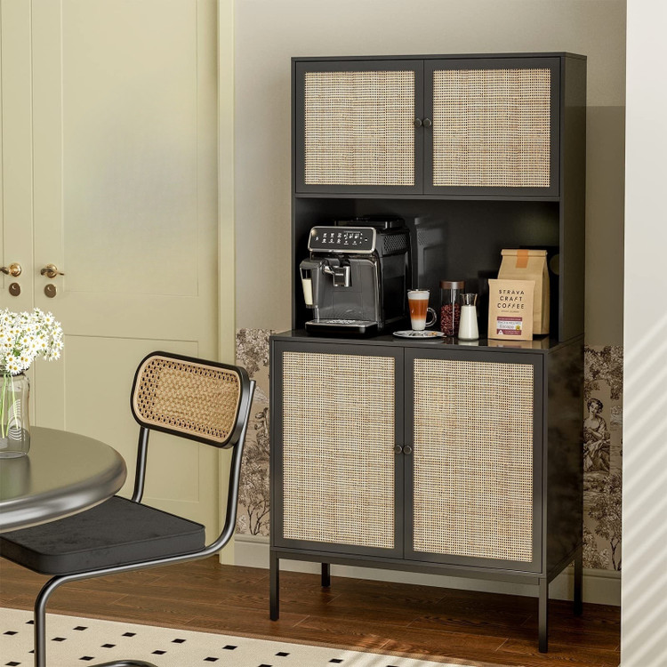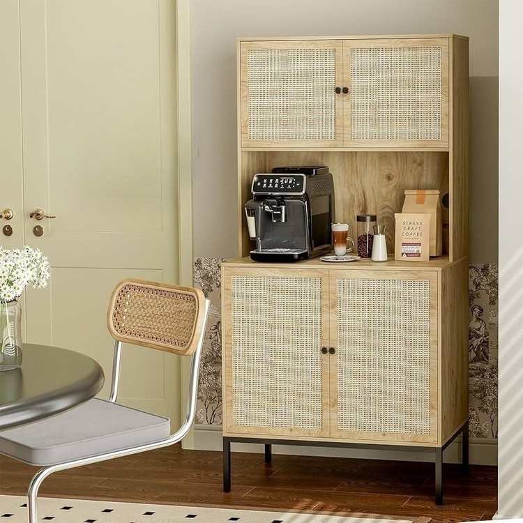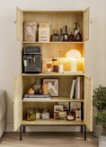 از مدل های ترند این روزهای خانه های ایرانی است. این مدل جذاب با طراحی زیبای خود زیبایی چشم نوازی به منازل شما میبخشد. متریال استفاده شده در این محصول از ادم دی اف خالص با حصیر میباشد که علاوه بر زیبایی استحکام قابل توجهی نیز دارد. رنگبندی خاص این محصول با ام دی اف همراه با حصیر پیشنهاد فروشگاه ما به شما عزیزان برای انتخاب یک کافی بار خاص میباشد. لولای دربها از نوع آرام بند بوده و پایه ها از نوع پایه مبلی با استحکام بالا و رنگ ثابت است. ابعاد و طراحی این محصول مطابق با سایز انواع قهوه ساز و ملزومات مورد نیاز است تا تجربه ی نوشیدن یه لیوان قهوه برای شما هرچه لذت بخشتر باشد. یکی از طبقات کافی بار مدل حصیری به صورت متحرک ساخته شده تا امکان جایگذاری انواع قهوه ساز و اسپرسو ساز با ارتفاع متنوع را به شما بدهد. ابعاد کلی و رنگبندی این محصول نیز مثل تمامی محصولات فروشگاه قابل تغییر به سبک و سلیقه ی شما عزیزان است. در ذیل به مشخصات فنی و ظاهری این محصول میپردازیم
