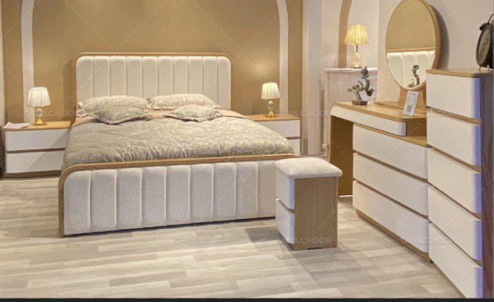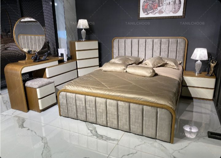 این سرویس خواب زیبا ، تنوع نوع پارچه ، رنگ پارچه و رنگ چوب بسیار بالایی دارد و شما به راجتی می توانید این سرویس خواب زیبا را به سلیقه خود شخصی سازی کنید .
