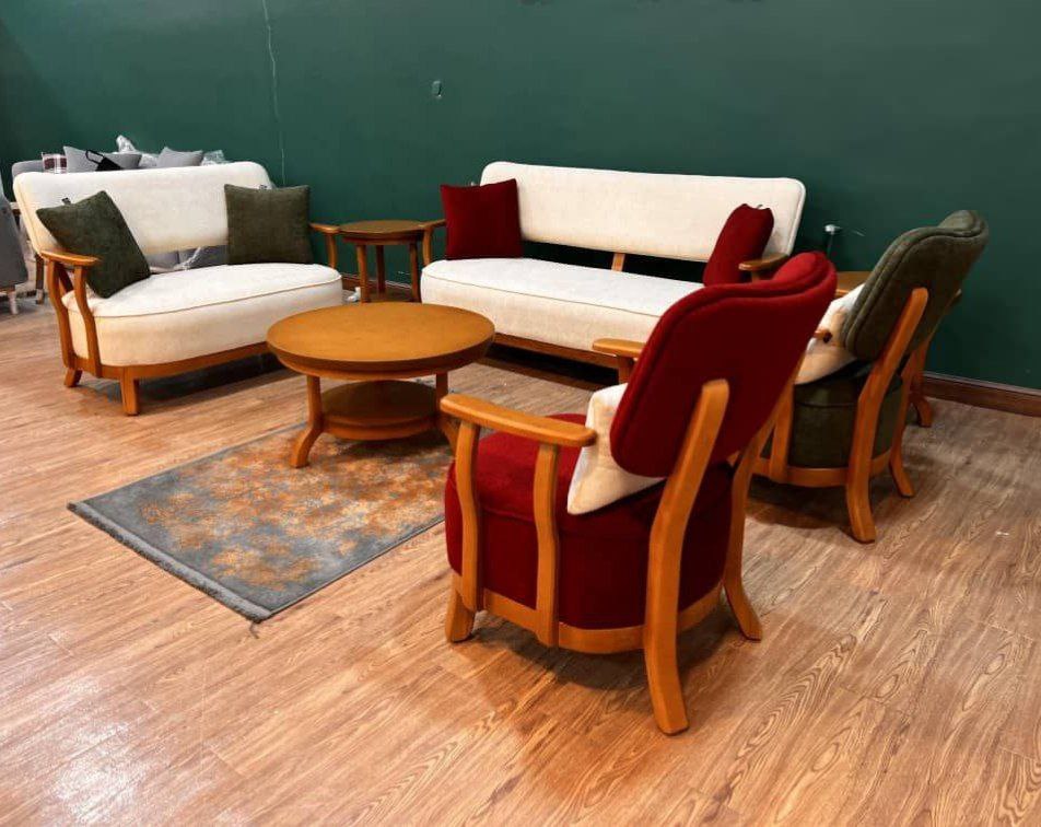 مبل راحتی کلاسیک دایان با نشیمن بزرگ و بسیار نرم به همراه 6 کوسن بزرگ لحظات راحتی برایتان فراهم می کند. استفاده از متریال مرغوب با قابلیت انتخاب رنگ دلخواه برای چوب و پارچه از مزایای این مبل هستند. قیمت اقتصادی آن را به اولویت خرید باسلیقه ها تبدیل می کند. این مبل راحتی 7 نفره با ترکیب یک کاناپه 3 نفره، یک کاناپه 2 نفره و 2 عدد تک مبل در خدمت اتاق نشیمن شماست. 6 عدد کوسن هم به راحتی مضاعف شما در تکیه دادن کمک خواهند کرد.