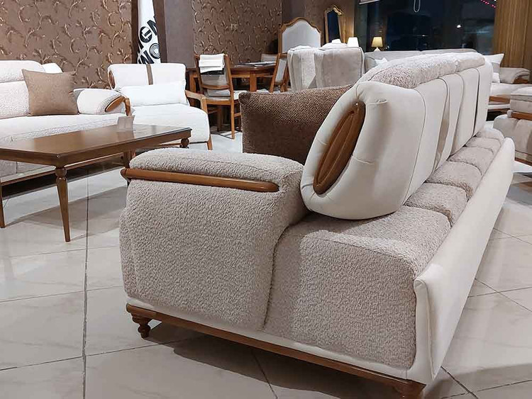 نما چوب طبیعی بهکار رفته در طراحی مبل، ظاهر لوکسی به آن میبخشد. علاوه بر ظاهر زیبا، چوب مقاوم است و دوام بالایی دارد.